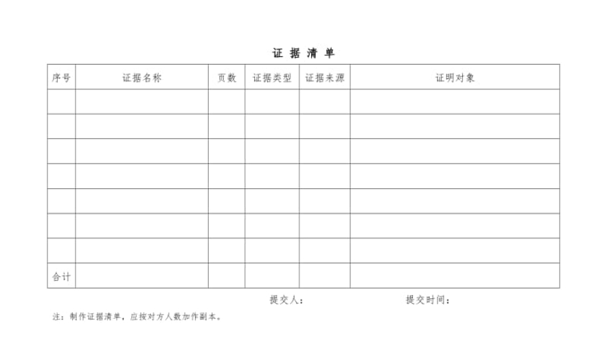 (七) 证据清单 证据清单的撰写是证据整理的重要内容。证据清单不仅要书面阐释每一份证据在案件中的证明作用,而且也要体现前面证据取舍、证据组织、证据编号等工作的成果。 |