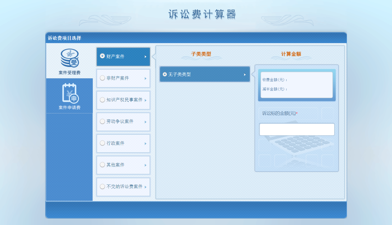 案件诉讼费速算工具